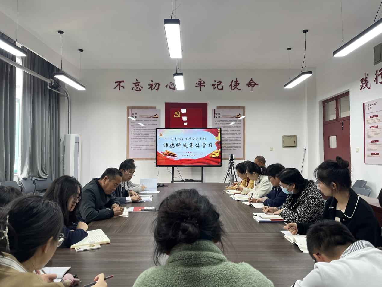 2023年11月8日上午,太阳成tyc7111cc党支部开展师德师风集体学习,由党支部书记王东同志主持。